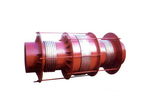 該膨脹節(jié)的兩端各有一個(gè)工作波紋管,中間有一個(gè)平衡波紋管,膨脹節(jié)通過(guò)受力構(gòu)件(大拉桿或舌管)來(lái)承受內(nèi)壓推力,因此管系只需中間固定支架。此類膨脹節(jié)只能吸收軸向位移。